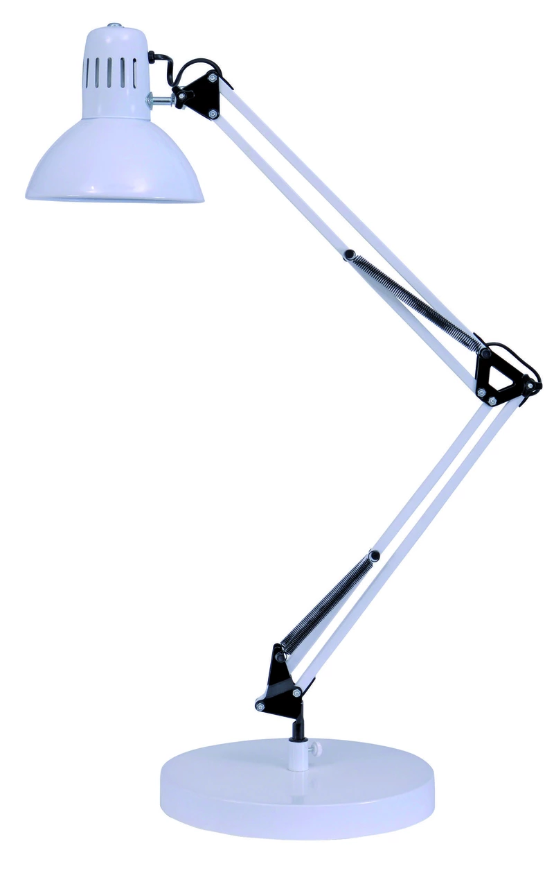 Cette lampe fluorescente est un classique indémodable. Elle est composée d'un double bras articulé, d'une tête orientable, d'une base ronde. Elle existe en noir et en blanc.