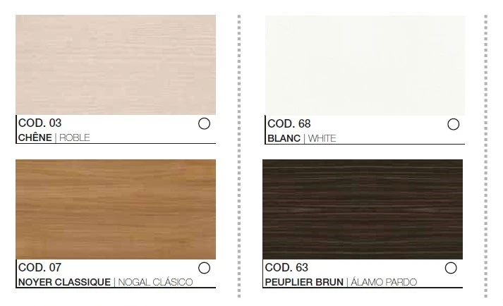 | Coloris | Peuplier , Noyer , Chêne , Blanc |