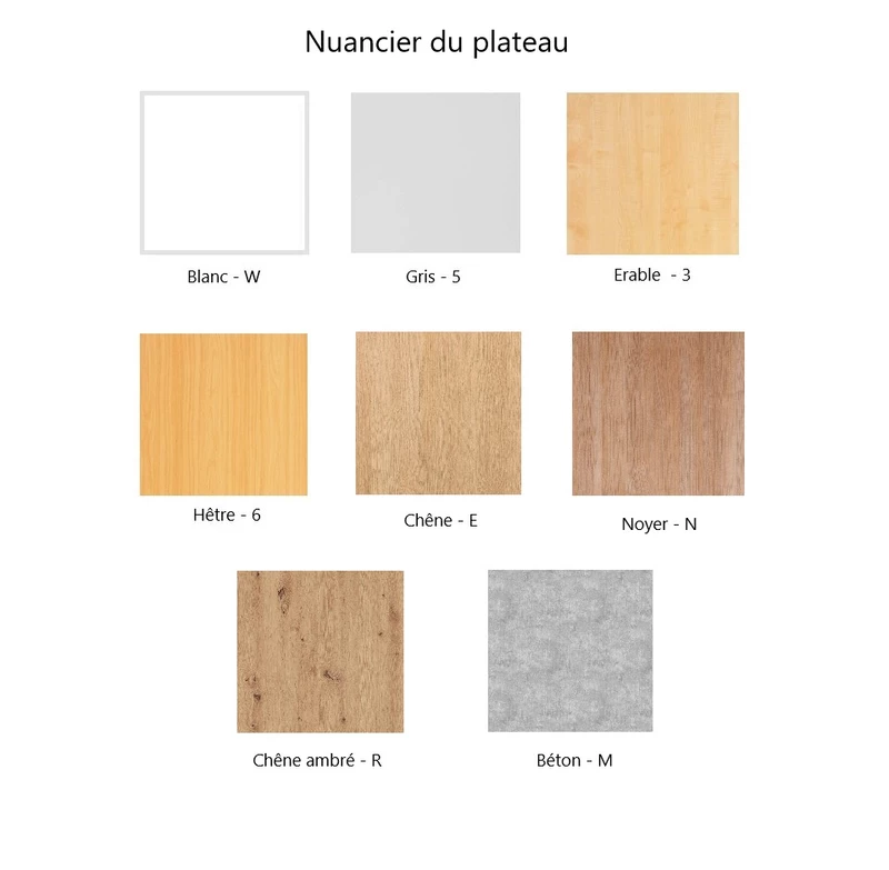 | Couleur Plateau | Chêne , Erable , gris , Hêtre , Noyer , Blanc |