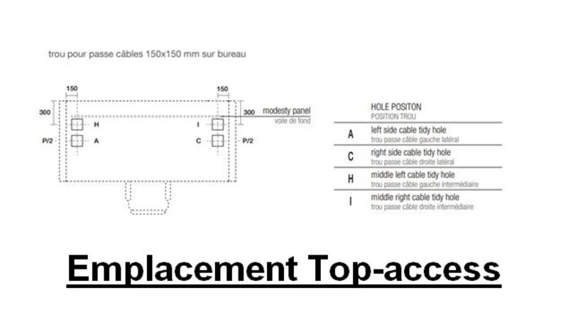 Choisir le positionnement du top access sur le schéma ci-dessus et nous envoyer le code par mail à : contact@monsieurbureau.com.