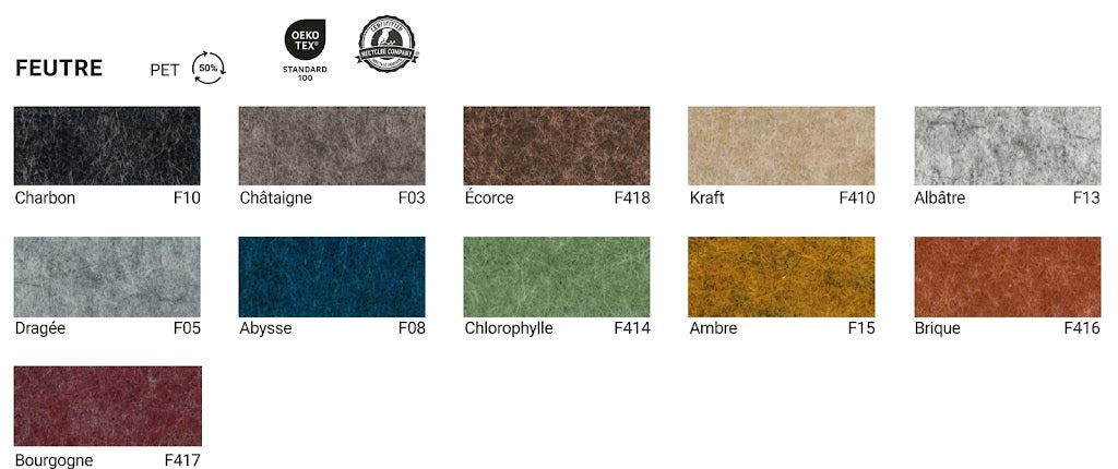 Réalisé en feutre PET de 12 mm d’épaisseur, il offre également d’excellentes propriétés acoustiques tout en étant résistant et durable.