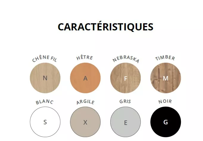 | Coloris | Blanc , Chêne Fil , Chêne Nebraska , Noir , Timber |