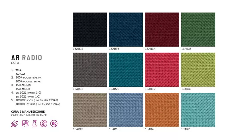 Sur demande et sur devis, il est possible de recouvrir ce canapé avec d'autres tissus de catégorie et d'aspects différents.
