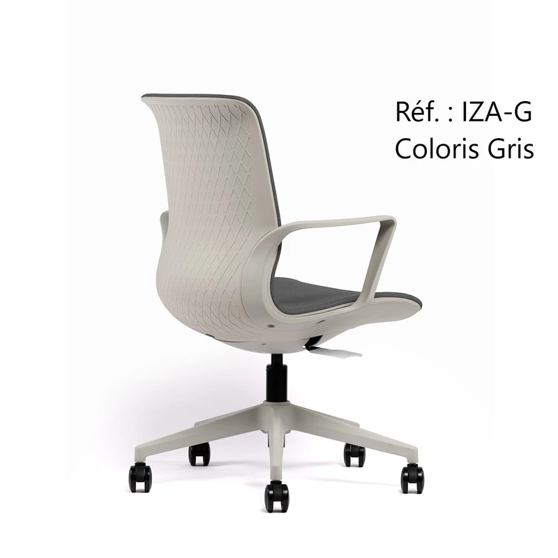 Le coloris du tissu est coordonné avec la coque, les accoudoirs et le piètement.