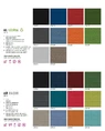 L'assise et le dossier sont capitonnés, ils sont présentés en coloris orange ou noir mais les tissus sont disponibles dans de nombreux coloris.