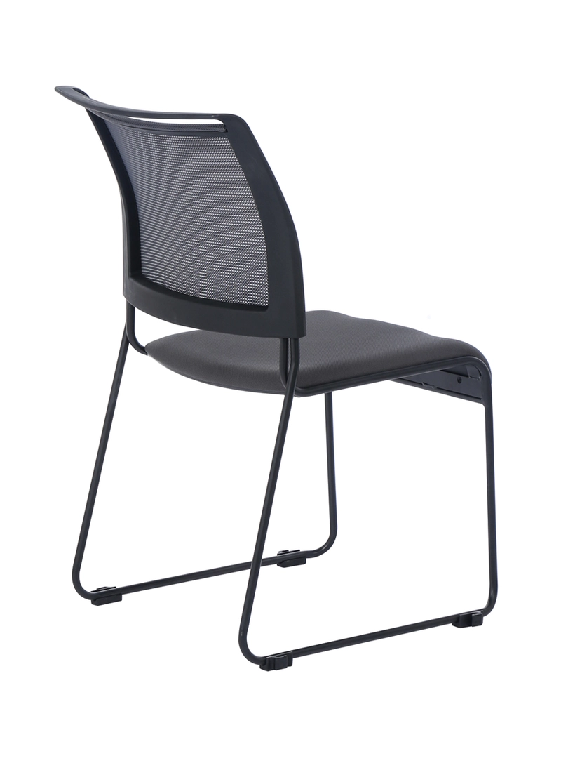 Il est constitué d'une assise rembourrée recouverte de tissu et d'un dossier en mailler repirante tendue sur un cadre en nylon noir.