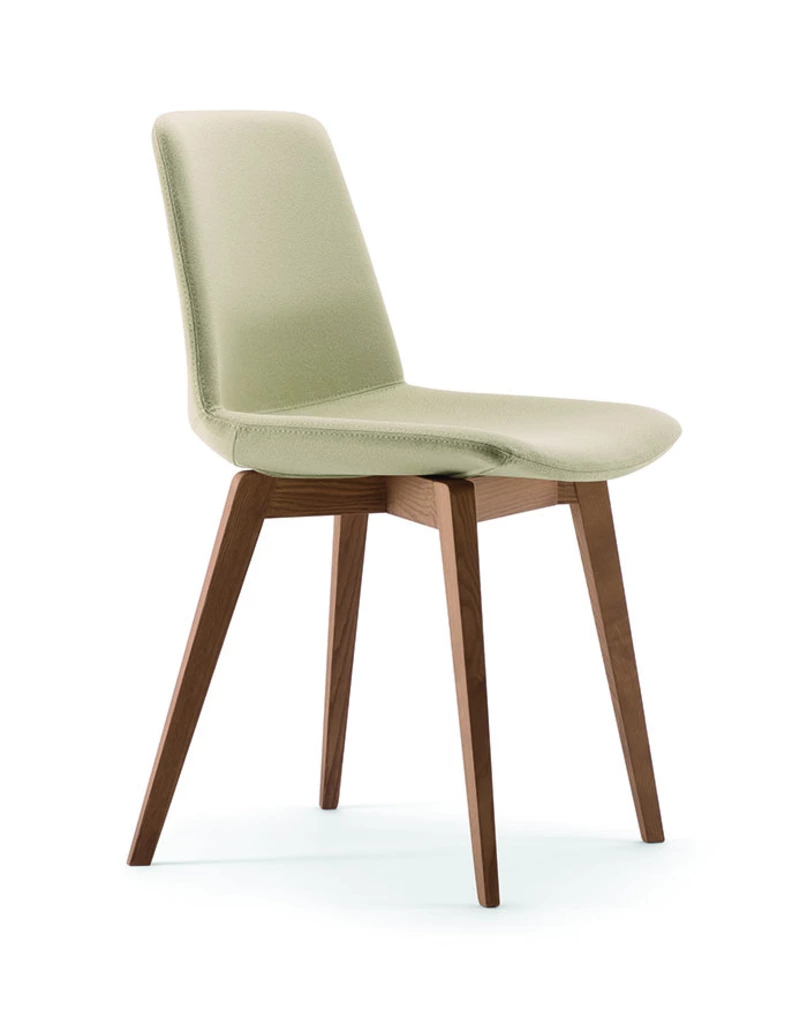 Ses 4 pieds bois sont en frêne vernis coloris noyer canaletto ou vernis chêne.