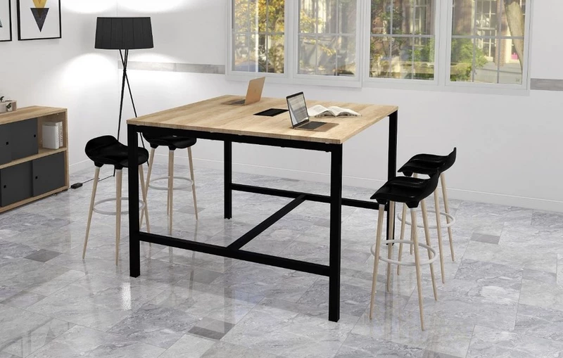 Ce tabouret se combine parfaitement avec des tables hautes pour créer un lieu accueillant et chaleureux propice aux échanges et aux bien être des collaborateurs.